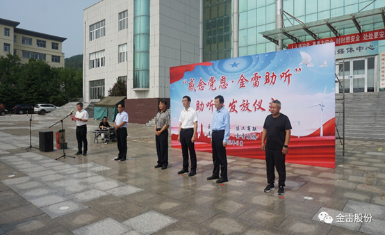 2022年6月30日(ri),在中國(guo)共產黨(dang)(dang)101年華誕(dan)來臨之際,為(wei)感念黨(dang)(dang)恩、為(wei)黨(dang)(dang)獻禮,金(jin)(jin)雷科技股份公司與區(qu)委(wei)統戰部、區(qu)工商(shang)聯、區(qu)慈善總(zong)會聯合開(kai)展了(le)“感念黨(dang)(dang)恩·金(jin)(jin)雷助(zhu)聽(ting)”助(zhu)聽(ting)器發放(fang)儀式,無償(chang)捐贈助(zhu)聽(ting)器,幫助(zhu)鋼城(cheng)區(qu)79位(wei)聽(ting)力(li)障礙老人重(zhong)獲(huo)聲音,打(da)開(kai)幸福生活之門。