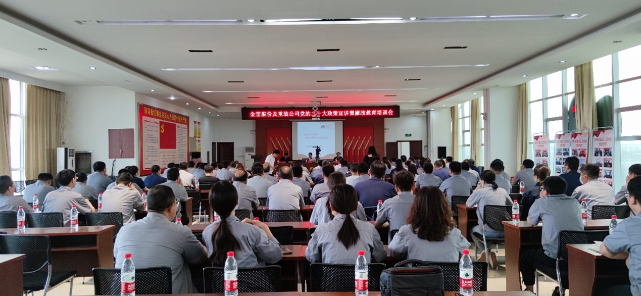 自公司成立以來,金雷股份一直堅持黨建引領企業發展道路。為深入貫徹黨的二十大精神,加強公司廉政建設,2023年5月20日,金雷股份及下屬子公司(山東金雷新能源重裝有限公司)在里辛黨群服務中心組織“黨的二十大政策宣講暨廉政教育培訓會”,將廣大黨員、干部、業務骨干的思想和行動統一到黨的二十大要求上去,進一步增強廣大員工的廉潔意識和法紀觀念,自覺筑牢拒腐防變思想防線。